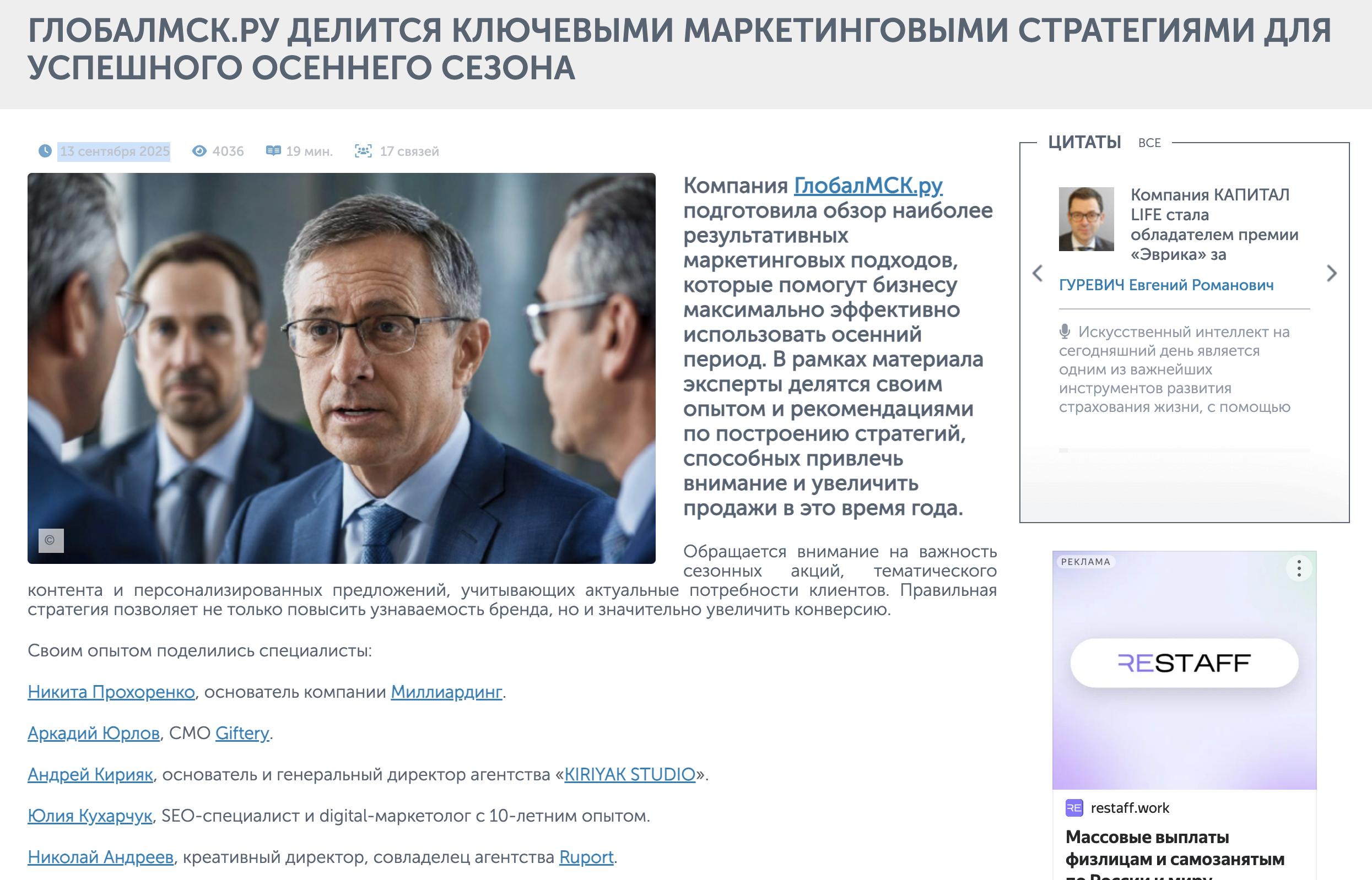 13 сентября 2025 ГлобалМСК.ру делится ключевыми маркетинговыми стратегиями для успешного осеннего сезона