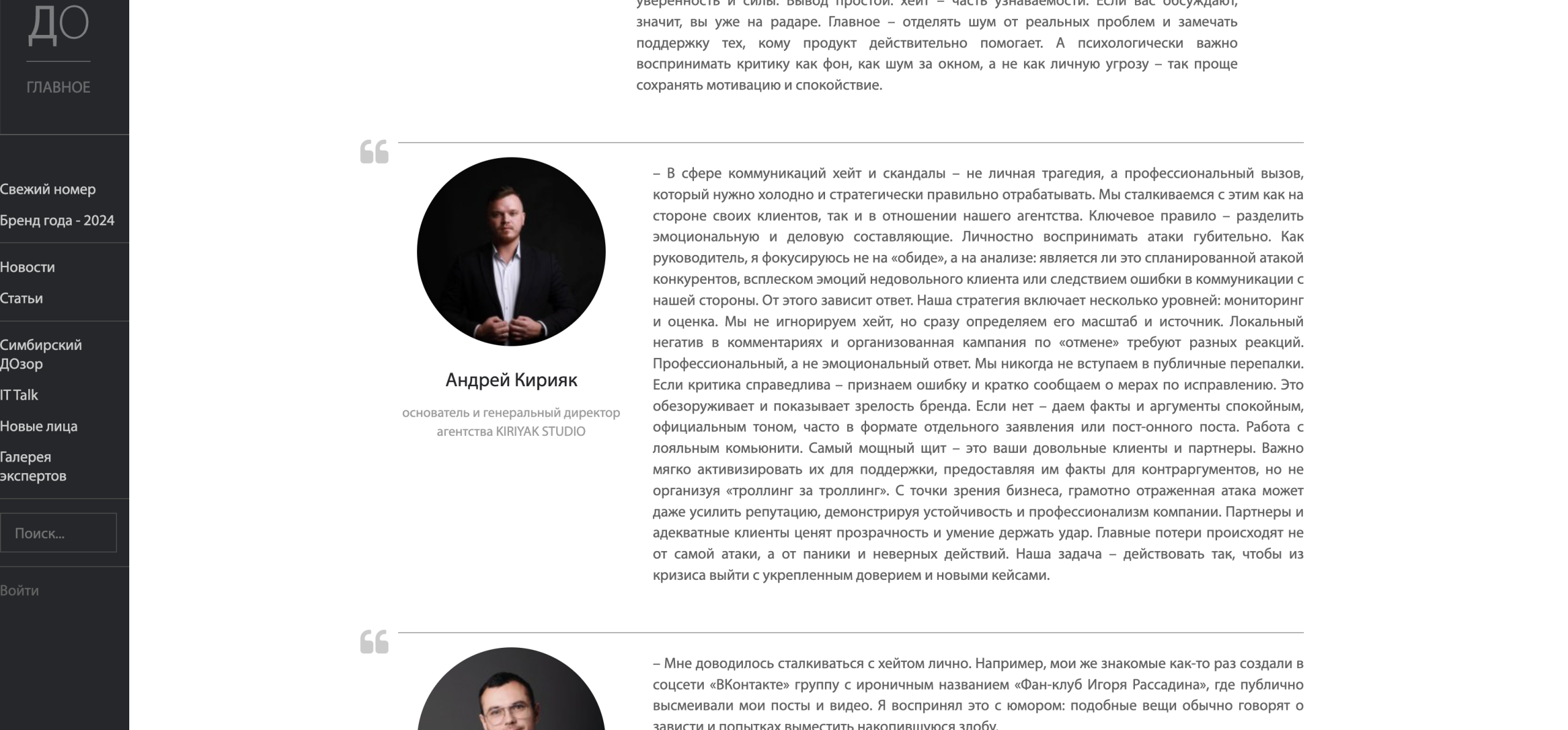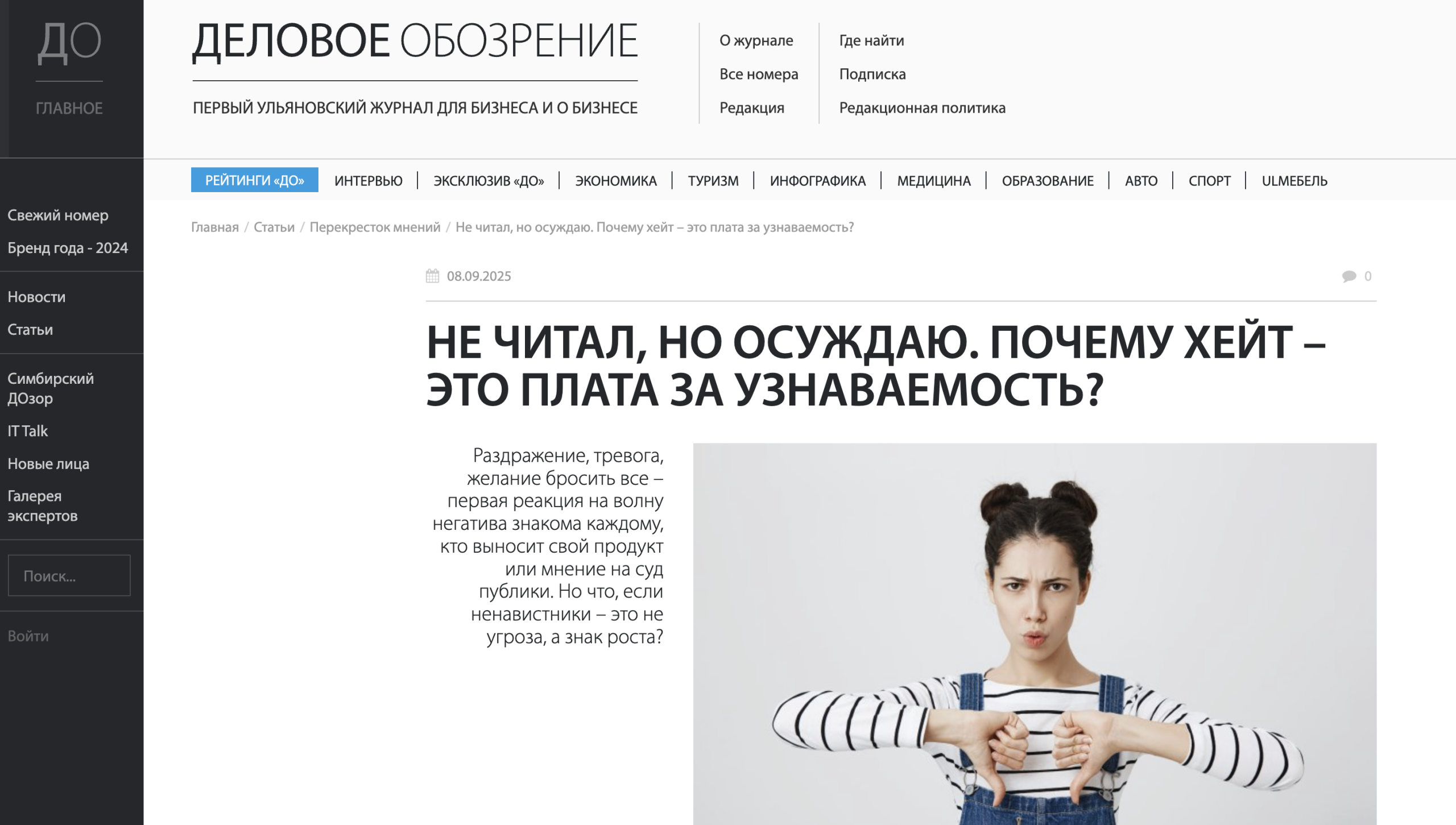 08.09.2025 — Журнал «Деловое Обозрение» Не читал, но осуждаю. Почему хейт – это плата за узнаваемость?